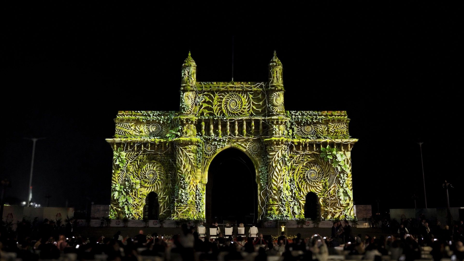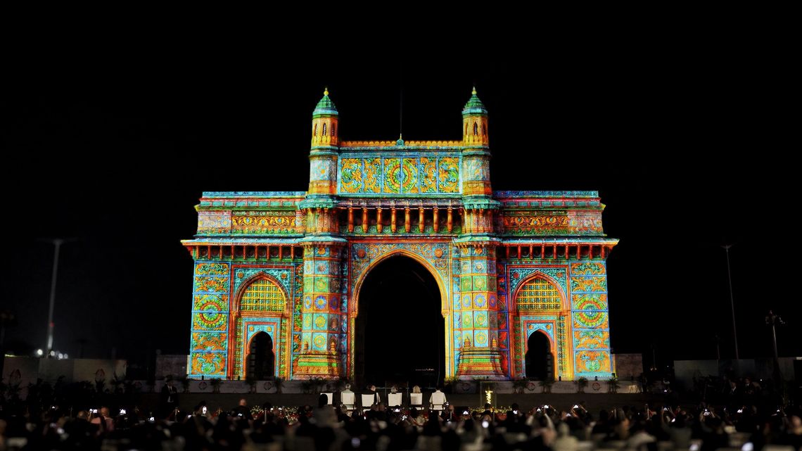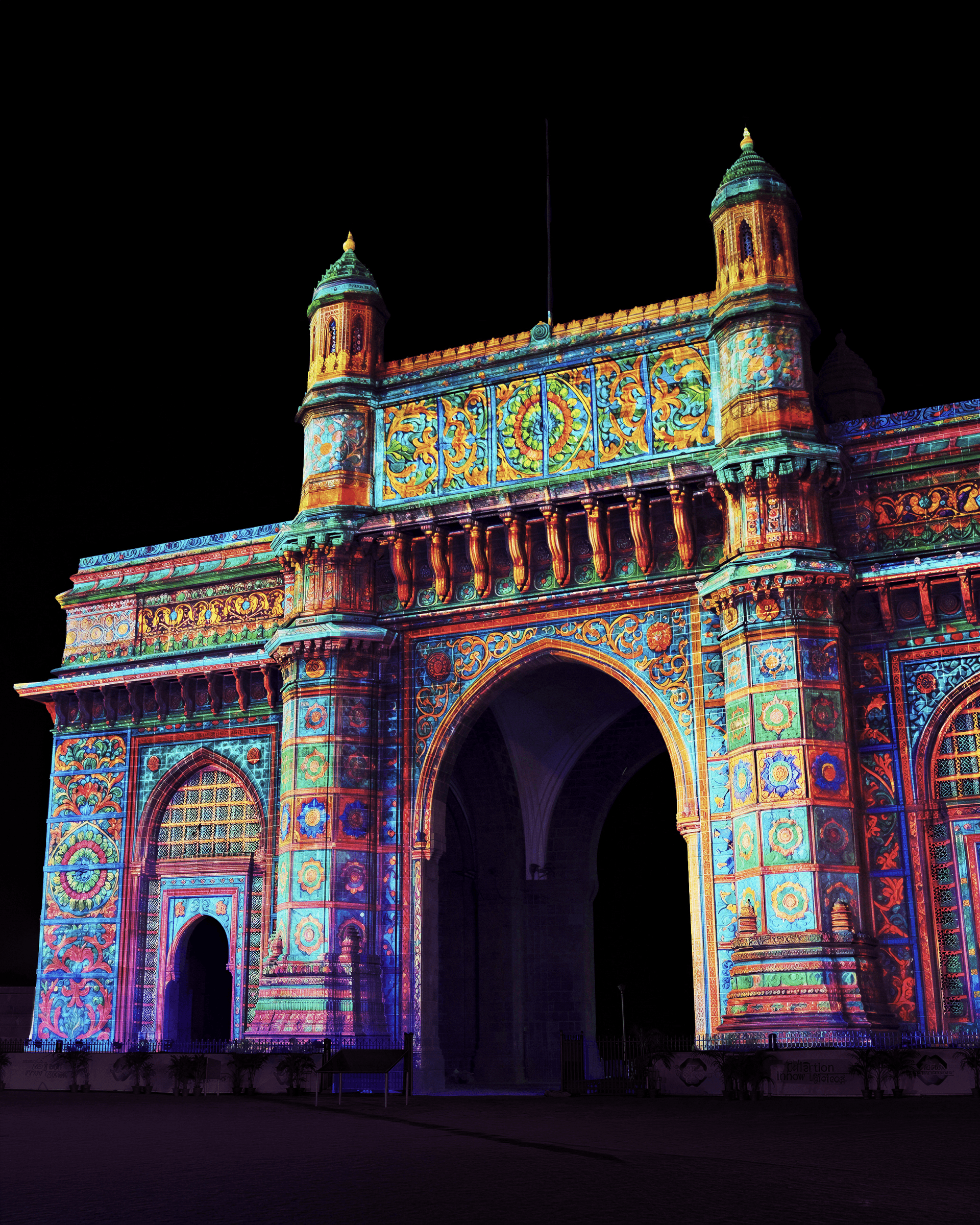 On the façade of the Gateway of India in Mumbai, the projection “A Shared Horizon” transformed the architecture into a dynamic narrative surface, enhancing its volumes, symmetries, and details through light, rhythm, and movement.